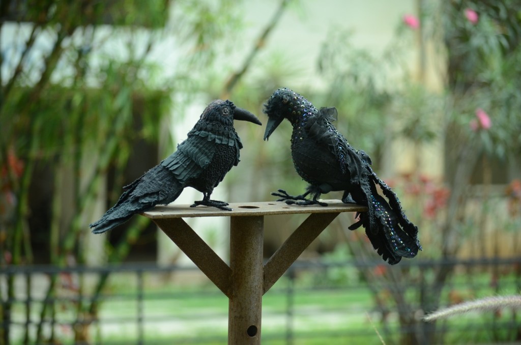 This fabric crow is constructed through layered textile techniques, with a focus on form, balance, and character. Built using hand stitching, the structure is shaped through careful stuffing and controlled construction to achieve a strong, upright presence.