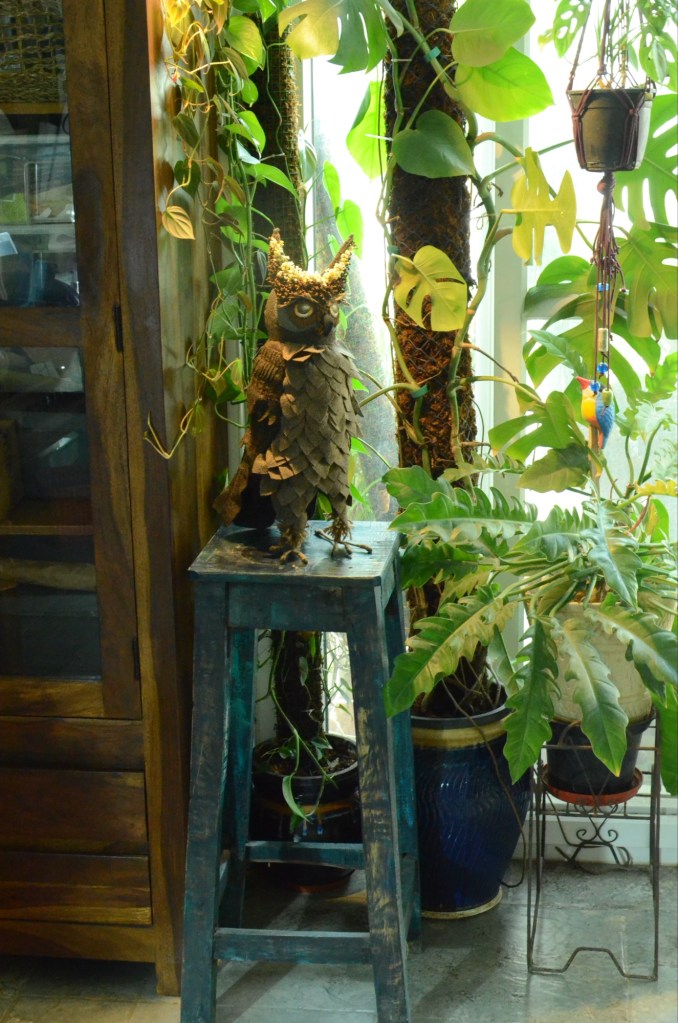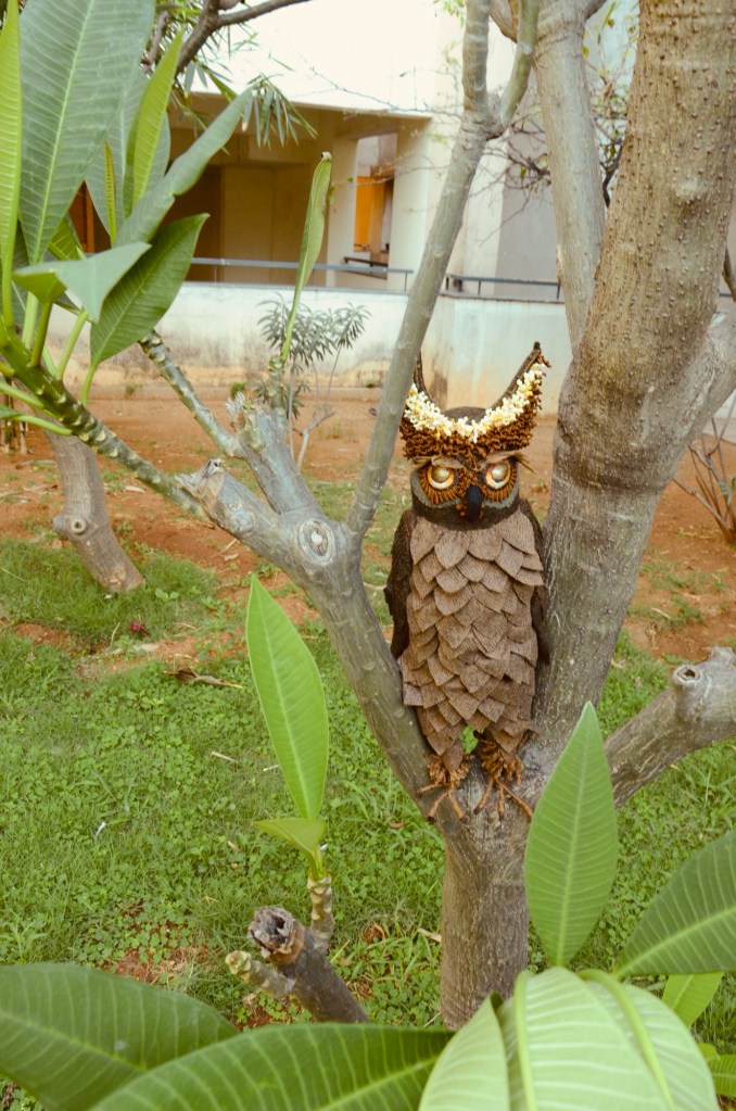 From a quiet piece of fabric to a watchful presence; this owl slowly found its way into being.