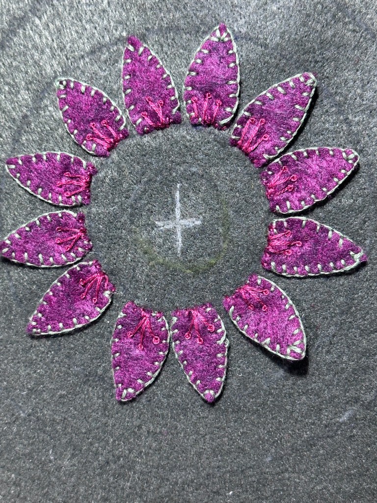 Felt Fabric Fusion Mandala. Hand appliqué, hand embroidery