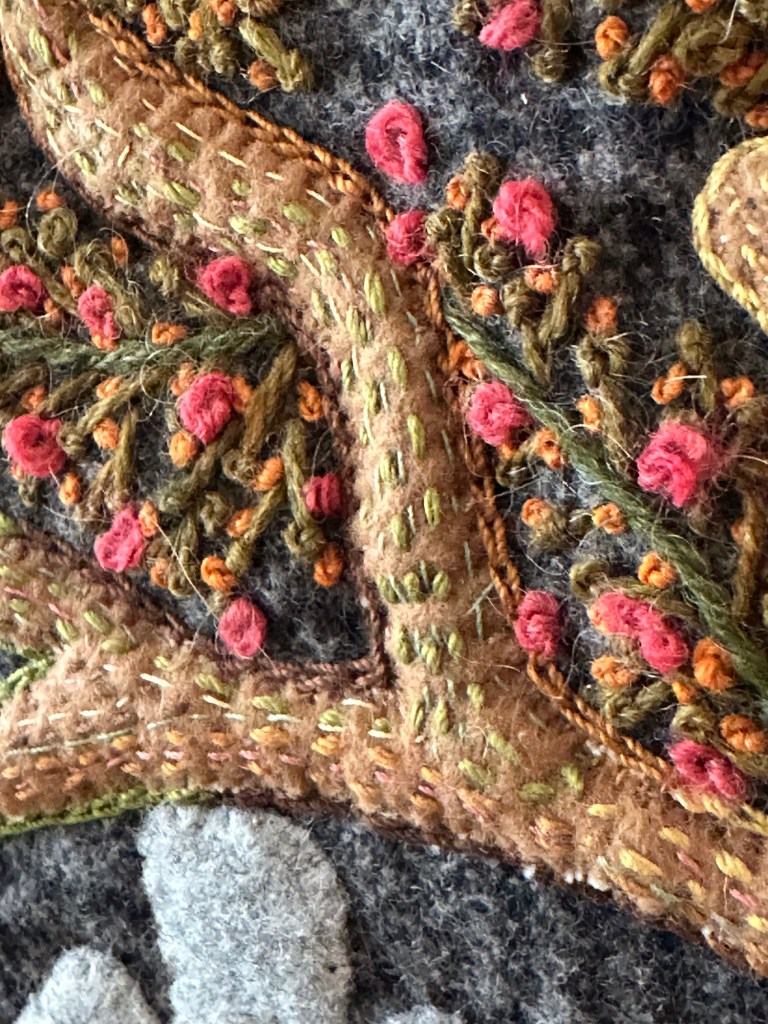 Medium: Wool background Fabric, Hand Appliqué, 3 Dimensional Hand Embroidery, Hand Quilted